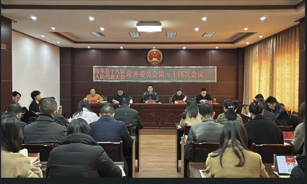12月26日,县十八届人大常委会第三十四次会议在县行政大厦人大会议室召开。县人大常委会主任曾彪,副主任饶爱华、何峰、李学莲出席会议,县人大常委会副主任聂志龙主持会议,人大常委会组成人员应到27人,实到24人,符合法定人数。县委常委、常务副县长蔡辉,县委常委、县纪委书记、县监委主任尧国强,县人民法院院长王芳,县人民检察院检察长杨忠东,县政府办主任王强,县财政局局长杨小明,县国有资产运营服务中心主任彭敏,县司法局局长刘勇、县市场监督管理局局长王智勇、县医疗保障局局长饶燕等列席会议。