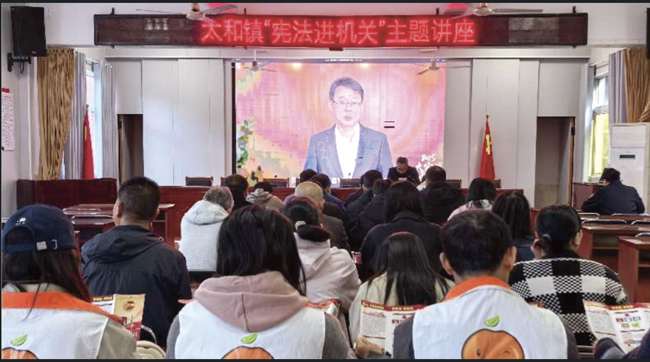 太和镇基层立法联系点联合辖区司法所、派出所等单位开展“宪法进机关”主题活动,分 别向镇机关干部、县总医院太和分院医务工作者开展法治宣传讲座。