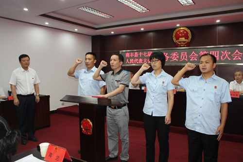 会议还表决通过了《关于提请饶小麟同志任职的议案》《关于提请程和平等同志法律职务任免的议案》《关于提请免去聂剑等同志检察员职务的议案》,同意免去聂剑等人职务,决定任命饶小麟为县人大常委会农环工委主任、程和平为县人民法院副院长、邓春玲为县人民法院市山人民法庭庭长、李美云为县人民法院白舍人民法庭庭长,新履职人员作了任职前发言。县人大常委会主任段云来为新履职人员颁发任命书,新履职人员向宪法庄严宣誓。