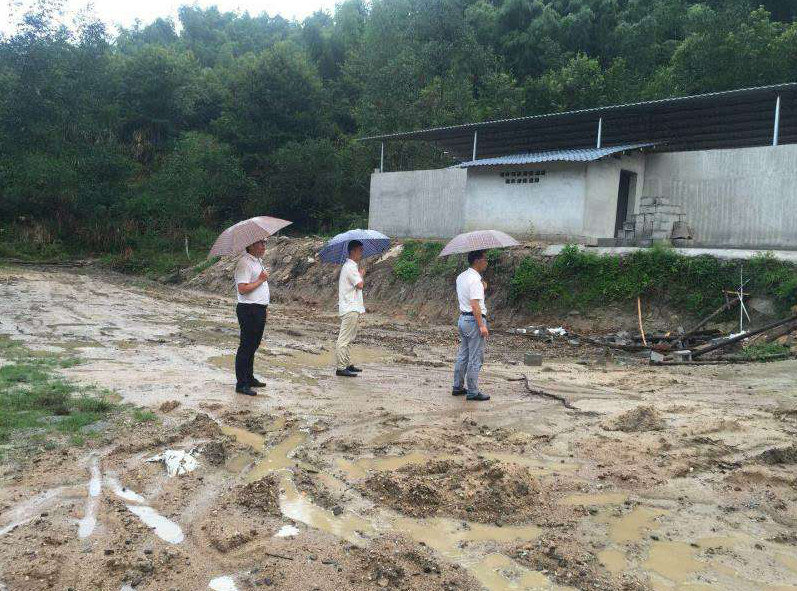8月28日,县人大代表、三溪乡党委书记甘光辉和乡长吴新欣在庙前村指导鸡源生牛养殖专业合作社基础设施建设工作。