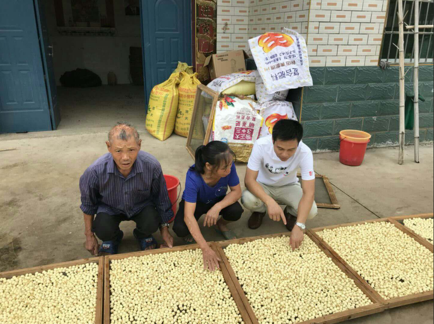 太源乡人大主席封国武指导贫困户烤白莲。